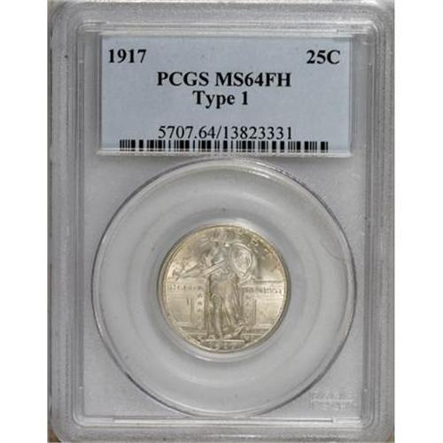 <B>1917 25C Type One MS64 Full Head PCGS.</B></I> PCGS Population (1321/1186). NGC Census: (980/946). Mintage: 8,740,000. Numismedia Wsl. Price for NGC/PCGS coin in MS64: $540. (#5707)<BR><BR><B>Coin Engraver:</B> Hermon A. MacNeil<BR><BR><b>Shipping:</b> Coins & Currency (<a target="_blank" href="http://www.heritageauctions.com/common/shipping.php">view shipping information</a>)