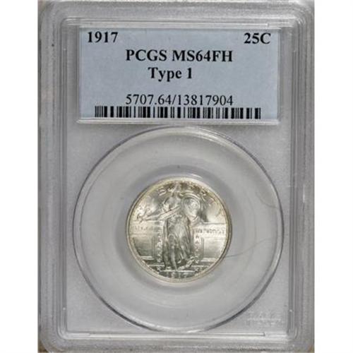 <B>1917 25C Type One MS64 Full Head PCGS.</B></I> PCGS Population (1326/1198). NGC Census: (984/948). Mintage: 8,740,000. Numismedia Wsl. Price for NGC/PCGS coin in MS64: $525. (#5707)<BR><BR><B>Coin Engraver:</B> Hermon A. MacNeil<BR><BR><b>Shipping:</b> Coins & Currency (<a target="_blank" href="http://www.heritageauctions.com/common/shipping.php">view shipping information</a>)