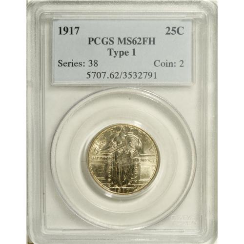 1917 25C Type One MS62 Full Head PCGS. Sharply struck