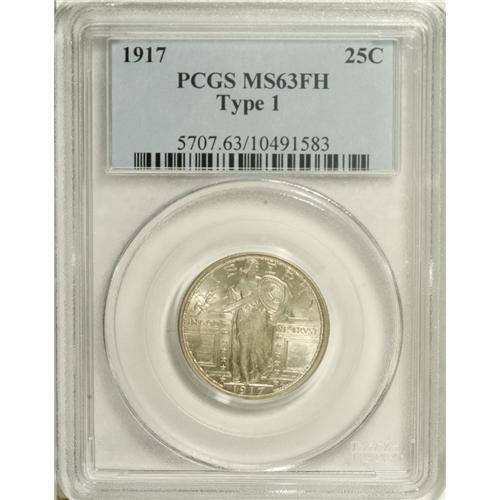 1917 25C Type One MS63 Full Head PCGS. Sharply struck