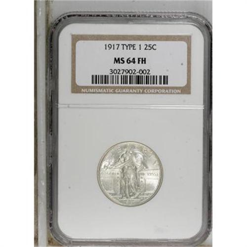 <B>1917 25C Type One MS64 Full Head NGC.</B></I> NGC Census: (971/940). PCGS Population (1300/1171). Mintage: 8,740,000. Numismedia Wsl. Price for NGC/PCGS coin in MS64: $540. (#5707)<BR><BR><b>Shipping:</b> Coins & Currency (<a target="_blank" href="http://www.heritageauctions.com/common/shipping.php">view shipping information</a>)