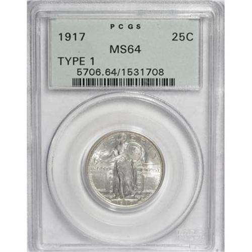<B>1917 25C Type One MS64 PCGS.</B></I> . PCGS Population (592/261). NGC Census: (494/227). Mintage: 8,740,000. Numismedia Wsl. Price for NGC/PCGS coin in MS64: $380. (#5706)<BR><BR><B>Coin Engraver:</B> Hermon A. MacNeil<BR><BR><b>Shipping:</b> Coins & Currency (<a target="_blank" href="http://www.heritageauctions.com/common/shipping.php">view shipping information</a>)