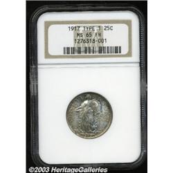 1917 25C Type One MS65 Full Head NGC. Well struck with gleaming luster and smooth, matte-like, grainy-textured surfaces. There is highly attractive dark-green and olive-tan mottling on display, primarily near the peripheries. Exquisitely preserved, the coin only shows a single contact mark, on Liberty's exposed breast. Important notice: Heritage usually auctions material at the rate of 200-250 lots per hour. On some occasions eBay Live bid software or the Internet may not be able to keep up with the pace of the auction. We recommend placing a realistic absentee bid now as insurance to avoid disappointment. Occasionally the auctioneer may eliminate or reject an eBay Live bid, and the auctioneer may also reopen a lot after the close of the eBay live bidding (usually because we missed an audience bid), and may reject your bid even if it shows you as the winning bidder. By bidding via eBay Live, you agree that Heritage may award the lot to another bidder at its sole discretion under the circumstances described above or any other reasonable circumstances. Also please note that all Heritage lots purchased through eBay Live carry a 20% Buyer's Premium. Please make sure you read the Terms and Conditions before you bid.