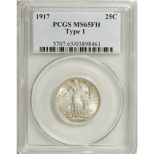 <B>1917 25C Type One MS65 Full Head PCGS.</B></I> Delicate apricot toning deepens slightly near the rims. This lustrous representative has a good strike and reasonable preservation. A popular, short-lived type.<BR><BR><b>Shipping:</b> Coins & Currency (<a target="_blank" href="http://www.heritageauctions.com/common/shipping.php">view shipping information</a>)