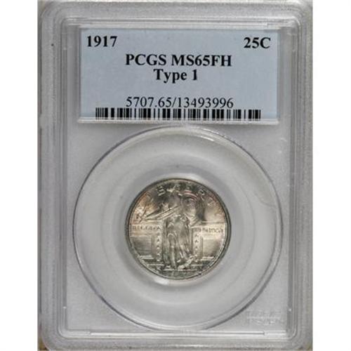 <B>1917 25C Type One MS65 Full Head PCGS.</B></I> Sharply struck and eminently appealing, jewel-toned sapphire and amethyst at the margins with strongly lustrous silver-gray centers. An enticing Full Head Gem representative of this popular type issue.<BR><BR><B>Coin Engraver:</B> Hermon A. MacNeil<BR><BR><b>Shipping:</b> Coins & Currency (<a target="_blank" href="http://www.heritageauctions.com/common/shipping.php">view shipping information</a>)