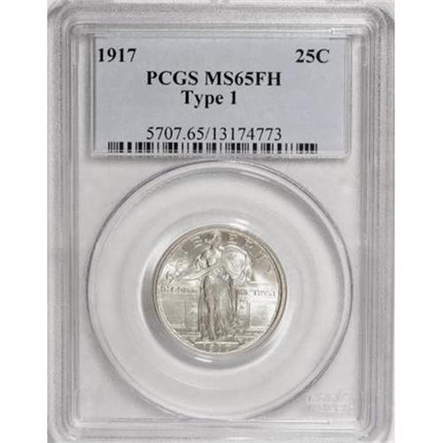 <B>1917 25C Type One MS65 Full Head PCGS.</B></I> Shimmering luster blankets the untoned surfaces of this highly attractive Gem quarter. The Type One variety was produced for only part of 1917, before minor design changes introduced the higher mintage Type Two. Well struck, with full definition on all of the shield rivets and on Liberty's head. Surface marks are minimal.<BR><I>From The Madison Collection.</B></I><BR><BR><B>Coin Engraver:</B> Hermon A. MacNeil<BR><BR><b>Shipping:</b> Coins & Currency (<a target="_blank" href="http://www.heritageauctions.com/common/shipping.php">view shipping information</a>)