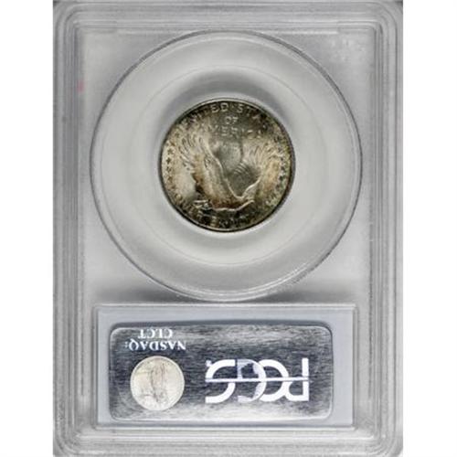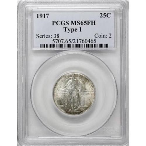 <B>1917 25C Type One MS65 Full Head PCGS.</B></I> Well struck with frosty luster and light splashes of dappled green and apricot patina near some of the peripheries. Pleasingly preserved with excellent eye appeal, a delightful type piece.<BR><BR><B>Coin Engraver:</B> Hermon A. MacNeil<BR><BR><b>Shipping:</b> Coins & Currency (<a target="_blank" href="http://www.heritageauctions.com/common/shipping.php">view shipping information</a>)