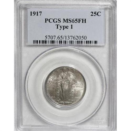 <B>1917 25C Type One MS65 Full Head PCGS.</B></I> A luminous and sublimely toned Gem exemplar of this popular type issue, boldly detailed with excellent visual appeal. The lavender patina displays lovely sky-blue and green-gold accents.<BR><BR><B>Coin Engraver:</B> Hermon A. MacNeil<BR><BR><b>Shipping:</b> Coins & Currency (<a target="_blank" href="http://www.heritageauctions.com/common/shipping.php">view shipping information</a>)