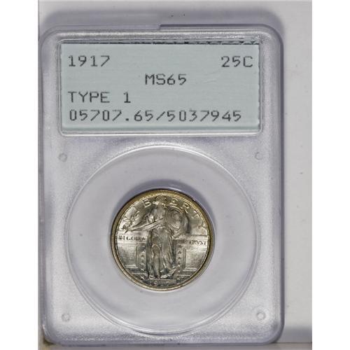 <B>1917<25C> Type One MS65 PCGS.</B></I> A lightly toned tan-gray Gem. Sharply struck and lustrous. The head appears to be full, but the first generation holder does not assert this attribute.
