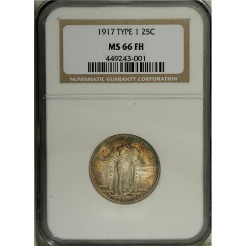 1917 25C Type One MS66 Full Head NGC. Beautiful golden
