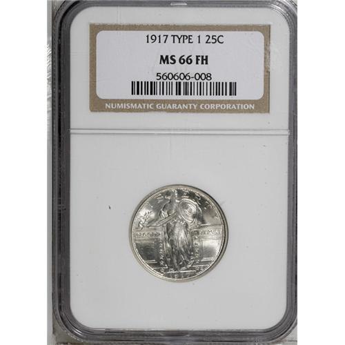 <B>1917<25C> Type One MS66 Full Head NGC.</B></I> Blazing luster with the usual fine-grain, matte-like granularity common to this issue. A lovely, high-end piece with a complete absence of toning.