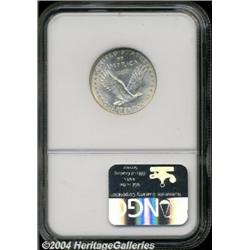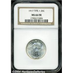 <B>1917<25C> Type One MS66 Full Head NGC.</B></I> Nearly untoned, with just a touch of color in the upper reverse field. The design elements are exquisitely struck throughout. The somewhat pebbly surfaces emit vibrant luster, and save for a small mark on the lower part of the outer shield, are blemish free. <BR><BR><B>Important notice:</B> Heritage usually auctions material at the rate of 200-250 lots per hour. On some occasions eBay Live bid software or the Internet may not be able to keep up with the pace of the auction. We recommend placing a realistic absentee bid now as insurance to avoid disappointment. Occasionally the auctioneer may eliminate or reject an eBay Live bid, and the auctioneer may also reopen a lot after the close of the eBay live bidding (usually because we missed an audience bid), and may reject your bid even if it shows you as the winning bidder. By bidding via eBay Live, you agree that Heritage may award the lot to another bidder at its sole discretion under the circumstances described above or any other reasonable circumstances. Since eBay bids are not shown to us until we open the lot on the floor, we treat those bids just like floor bids. In most cases the floor responds before the eBay bid is presented to us, due to Internet lag time, so for consistency we have made it a policy that floor bids are always considered first over tie eBay live bids. Also please note that all Heritage lots purchased through eBay Live carry a 20% Buyer's Premium. Please make sure you read the Terms and Conditions before you bid. </span></font></tr></table></td></tr></table>