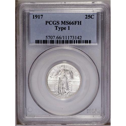 <B>1917<25C> Type One MS66 Full Head PCGS.</B></I> Brilliant-white luster with fully formed devices. This issue is often seen well struck, and this piece is no exception. It is unusual to see one so pure-white with only the most trivial imperfections.
