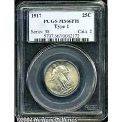 <B>1917<25C> Type One MS66 Full Head PCGS.</B></I> A patinated multicolor patina covers the centers and a thin ring of darker, russet toning lies around the peripheries of this quarter dollar. Also exceptionally preserved as the abrasion-free surfaces easily merit the Premium Gem grade. <BR><BR><B>Important notice:</B> Heritage usually auctions material at the rate of 200-250 lots per hour. On some occasions eBay Live bid software or the Internet may not be able to keep up with the pace of the auction. We recommend placing a realistic absentee bid now as insurance to avoid disappointment. Occasionally the auctioneer may eliminate or reject an eBay Live bid, and the auctioneer may also reopen a lot after the close of the eBay live bidding (usually because we missed an audience bid), and may reject your bid even if it shows you as the winning bidder. By bidding via eBay Live, you agree that Heritage may award the lot to another bidder at its sole discretion under the circumstances described above or any other reasonable circumstances. Since eBay bids are not shown to us until we open the lot on the floor, we treat those bids just like floor bids. In most cases the floor responds before the eBay bid is presented to us, due to Internet lag time, so for consistency we have made it a policy that floor bids are always considered first over tie eBay live bids. Also please note that all Heritage lots purchased through eBay Live carry a 20% Buyer's Premium. Please make sure you read the Terms and Conditions before you bid. </span></font></tr></table></td></tr></table>