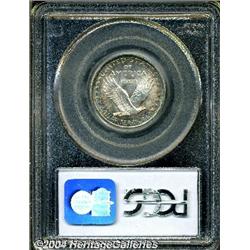 <B>1917<25C> Type One MS66 Full Head PCGS.</B></I> Cobalt-blue and lavender toning gravitates toward the borders of this highly lustrous specimen. Sharply struck, with no mentionable marks to report. <BR><BR><B>Important notice:</B> Heritage usually auctions material at the rate of 200-250 lots per hour. On some occasions eBay Live bid software or the Internet may not be able to keep up with the pace of the auction. We recommend placing a realistic absentee bid now as insurance to avoid disappointment. Occasionally the auctioneer may eliminate or reject an eBay Live bid, and the auctioneer may also reopen a lot after the close of the eBay live bidding (usually because we missed an audience bid), and may reject your bid even if it shows you as the winning bidder. By bidding via eBay Live, you agree that Heritage may award the lot to another bidder at its sole discretion under the circumstances described above or any other reasonable circumstances. Since eBay bids are not shown to us until we open the lot on the floor, we treat those bids just like floor bids. In most cases the floor responds before the eBay bid is presented to us, due to Internet lag time, so for consistency we have made it a policy that floor bids are always considered first over tie eBay live bids. Also please note that all Heritage lots purchased through eBay Live carry a 20% Buyer's Premium. Please make sure you read the Terms and Conditions before you bid.