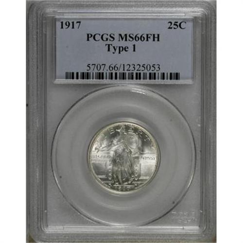 <B>1917 25C Type One MS66 Full Head PCGS.</B></I> A powerful strike leaves exquisite delineation throughout the design elements of this Premium Gem; not only is Liberty's head full, but virtually complete detail occurs in the vertical and horizontal stripes of the shield and the eagle's plumage. Impeccably preserved surfaces exhibit magnificent luster and are untoned.<BR><BR><B>Coin Engraver:</B> Hermon A. MacNeil<BR><BR><b>Shipping:</b> Coins & Currency (<a target="_blank" href="http://www.heritageauctions.com/common/shipping.php">view shipping information</a>)
