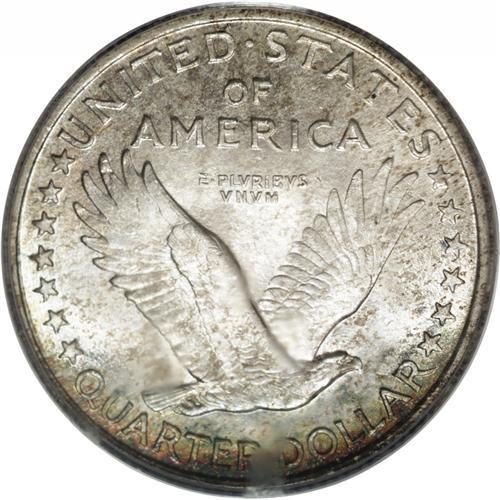 <B>1917<25C> Type One MS67 Full Head PCGS.</B></I> Toned with peripheral aqua, crimson-gold, and lavender, with the more intense colors relegated to the periphery. The centers are quite lustrous and subdued by a smattering of golden flecks. Sharply struck and quite attractive for this issue, and one of the finest yet seen by the two primary grading services. Population: 52 in 67, 0 finer (3/06).