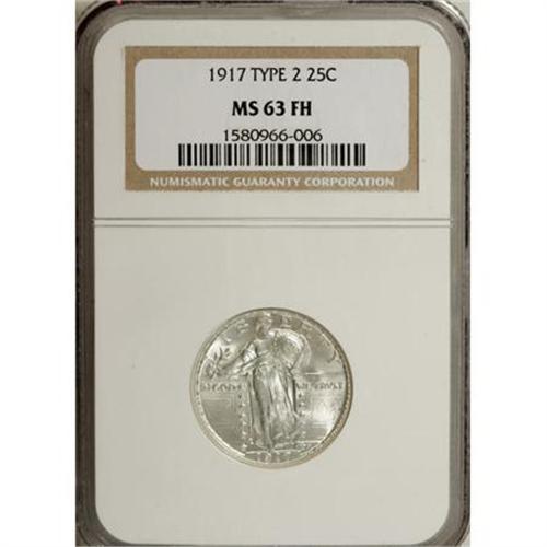 <B>1917 25C Type Two MS63 Full Head NGC.</B></I> NGC Census: (131/372). PCGS Population (187/496). Mintage: 13,880,000. Numismedia Wsl. Price for NGC/PCGS coin in MS63: $300. (#5715)<BR><BR><B>Coin Engraver:</B> Hermon A. MacNeil<BR><BR><b>Shipping:</b> Coins & Currency (<a target="_blank" href="http://www.heritageauctions.com/common/shipping.php">view shipping information</a>)
