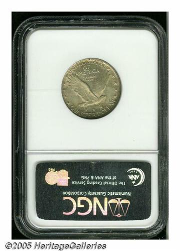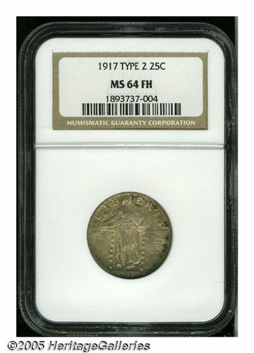 <B>1917<25C> Type Two MS64 Full Head NGC.</B></I> Lustrous surfaces are visited by golden-tan patina imbued with sky-blue accents on the obverse, while the reverse, exhibiting the same color pattern, displays slightly lighter hues. A trivial mark is noted in the left (facing) reverse field.<BR><I>From the Dr. Kurt Peters Collection.</B></I> From the Dr. Kurt Peters Collection.