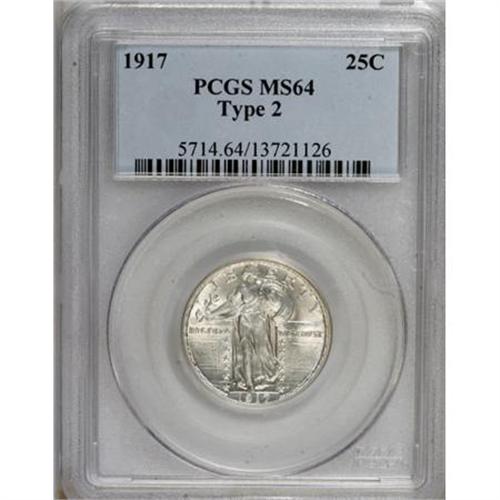 <B>1917 25C Type Two MS64 PCGS.</B></I> PCGS Population (146/105). NGC Census: (100/93). Mintage: 13,880,000. Numismedia Wsl. Price for NGC/PCGS coin in MS64: $300. (#5714)<BR><BR><B>Coin Engraver:</B> Hermon A. MacNeil<BR><BR><b>Shipping:</b> Coins & Currency (<a target="_blank" href="http://www.heritageauctions.com/common/shipping.php">view shipping information</a>)