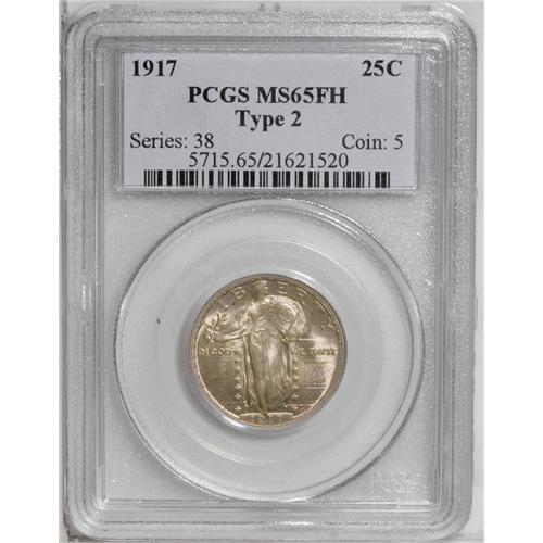 <B>1917<25C> Type Two MS65 Full Head PCGS.</B></I> Pale champagne toning adorns this highly lustrous and intricately detailed Gem. Only a couple tiny marks appear in the fields, though these are enough to define the grade.