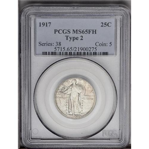 1917 25C Type Two MS65 Full Head PCGS. Radiantly lustr 1917[25C] Type Two MS65 Full Head PCGS.