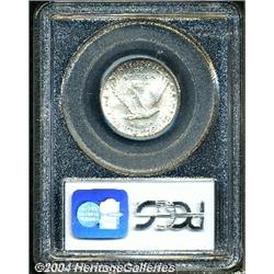 <B>1917<25C> Type Two MS65 PCGS.</B></I> Bright lustrous surfaces are visited by light speckled olive toning on the reverse. The design elements are well struck, including good (but not full) definition on Liberty's head. A shallow curvilinear scratch is noted on the left (right facing) gate. A very attractive piece overall. Population: 70 in 65, 16 finer (9/04). <BR><BR><B>Important notice:</B> Heritage usually auctions material at the rate of 200-250 lots per hour. On some occasions eBay Live bid software or the Internet may not be able to keep up with the pace of the auction. We recommend placing a realistic absentee bid now as insurance to avoid disappointment. Occasionally the auctioneer may eliminate or reject an eBay Live bid, and the auctioneer may also reopen a lot after the close of the eBay live bidding (usually because we missed an audience bid), and may reject your bid even if it shows you as the winning bidder. By bidding via eBay Live, you agree that Heritage may award the lot to another bidder at its sole discretion under the circumstances described above or any other reasonable circumstances. Since eBay bids are not shown to us until we open the lot on the floor, we treat those bids just like floor bids. In most cases the floor responds before the eBay bid is presented to us, due to Internet lag time, so for consistency we have made it a policy that floor bids are always considered first over tie eBay live bids. Also please note that all Heritage lots purchased through eBay Live carry a 20% Buyer's Premium. Please make sure you read the Terms and Conditions before you bid.