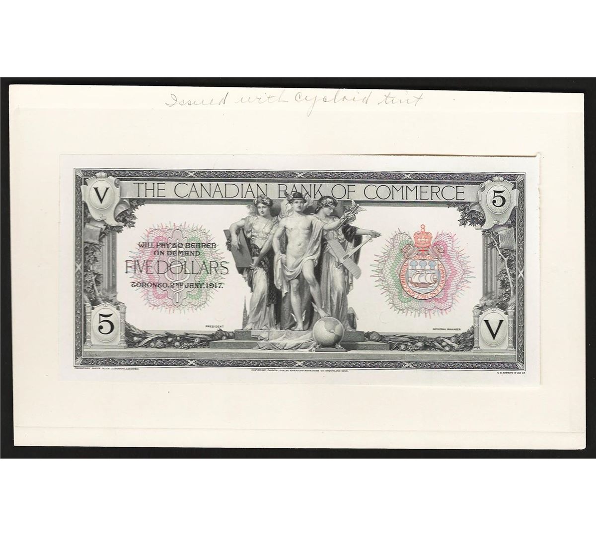 One 1917 $5 Canadian Bank of Commerce Proof Note.