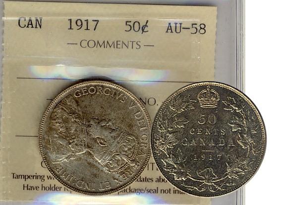 1917 50¢ ICCS AU58, A nice example with lots of lustre.
