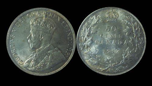 1917 50¢ ICCS MS65PQ. TIED FOR FINEST GRADED! Flashy toning over full ynderlying lustre. A spectacular example.