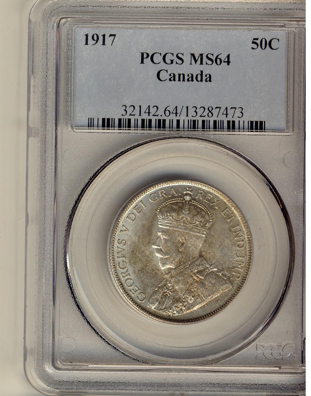 1917 50¢ PCGS MS64. Choice lustre and tone.