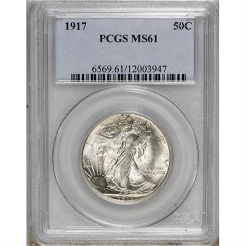 <B>1917 50C MS61 PCGS.</B></I> . PCGS Population (25/1665). NGC Census: (52/1387). Mintage: 12,292,000. Numismedia Wsl. Price for NGC/PCGS coin in MS61: $125. (#6569)<BR><BR><B>Coin Engraver:</B> Adolph A. Weinman<BR><BR><b>Shipping:</b> Coins & Currency (<a target="_blank" href="http://www.heritageauctions.com/common/shipping.php">view shipping information</a>)