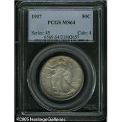<B>1917 50C MS64 PCGS.</B></I> The 1917 Walker often comes with striking problems and bothersome abrasions. This example is well impressed, showing strong definition on Liberty's head and left hand area. The only marks worthy of mention are a couple of light luster grazes in the right obverse field.<BR><I>From The William & Harrison Hiatt Registry Collection, Part Two.</B></I> Lot:7924