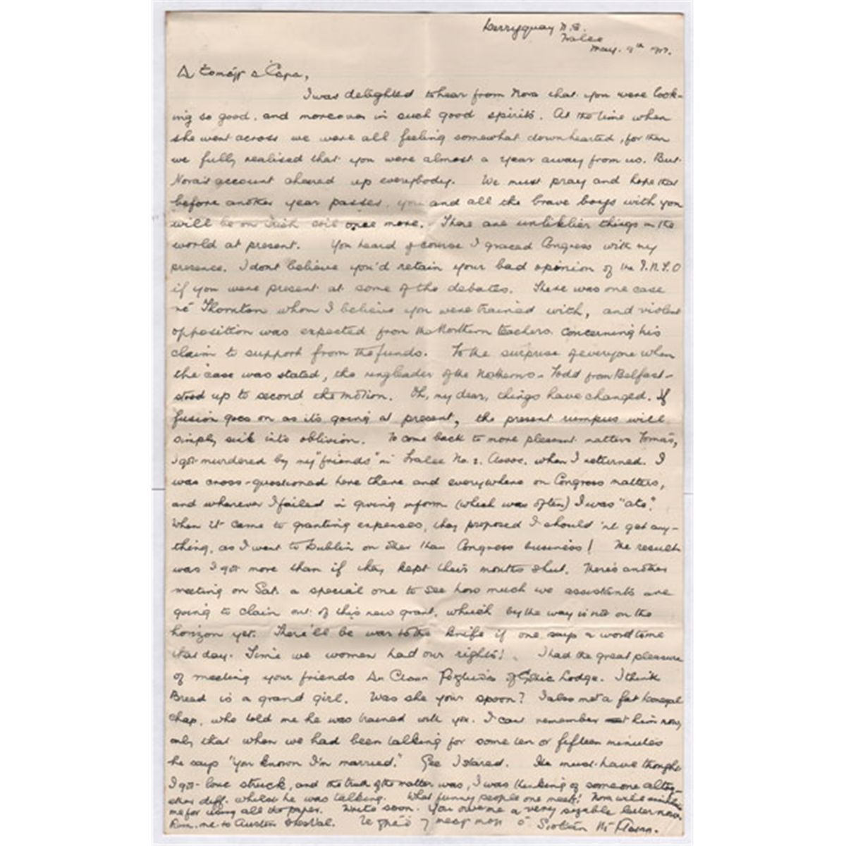 1917 (9 May) Letter to Thomas Ashe while in Lewes Jail