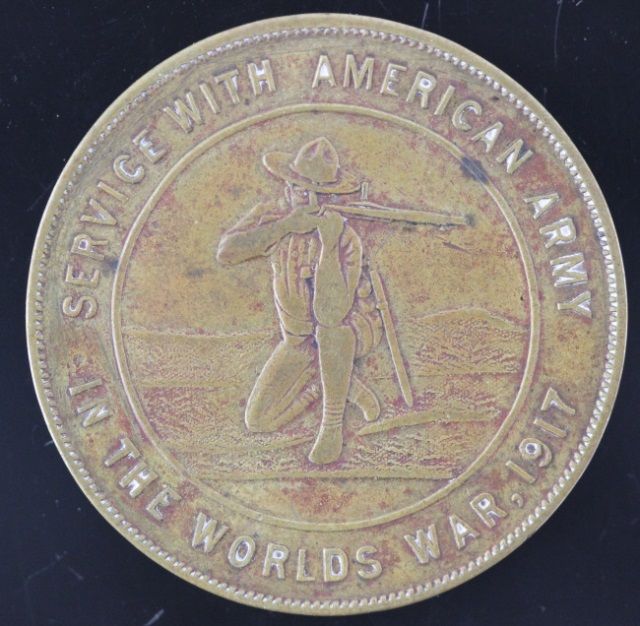 This wonderful coin is great condition. This coin reads Service with American Army In the Worlds War, 1917 on the obverse and Trust in the Lord and Keep Your Powder Dry on the obverse. Don't pass on your chance to add this piece of history to your collection.