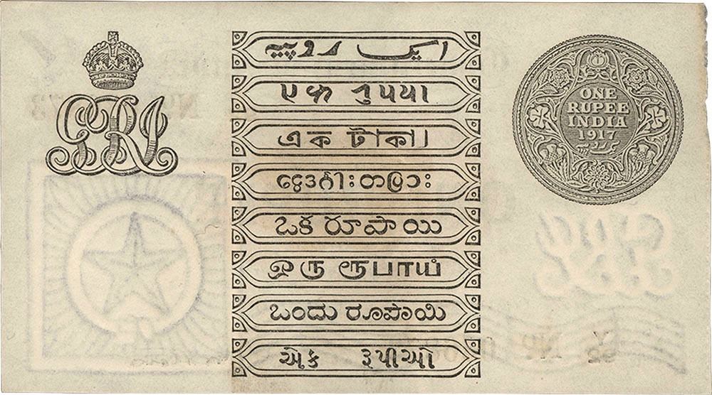 1917 British India One Rupee Note of King George V Signed by A.C. McWatters.