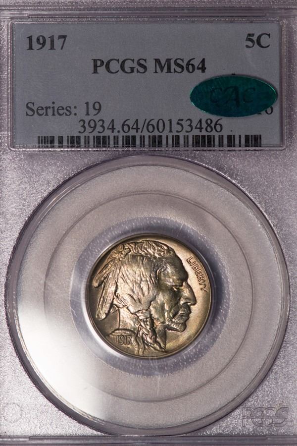 One 1917 Buffalo Nickel PCGS MS64 CAC.