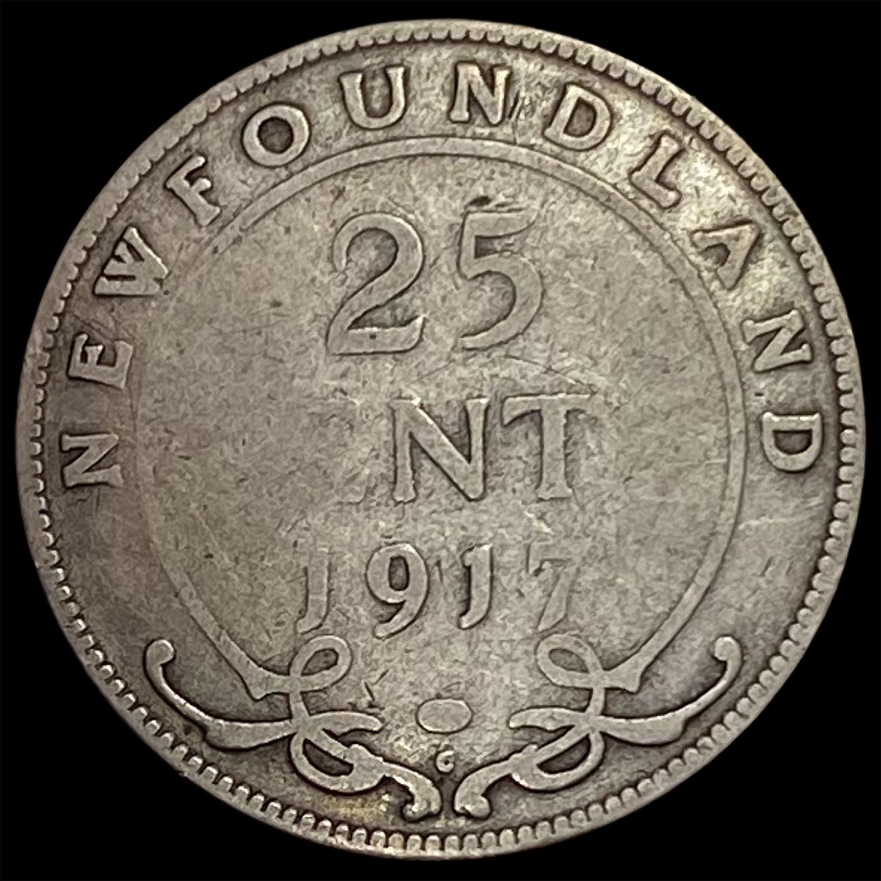 1917-C NewFoundland George V Silver 25 Cents NEARLY UNCIRCULATED