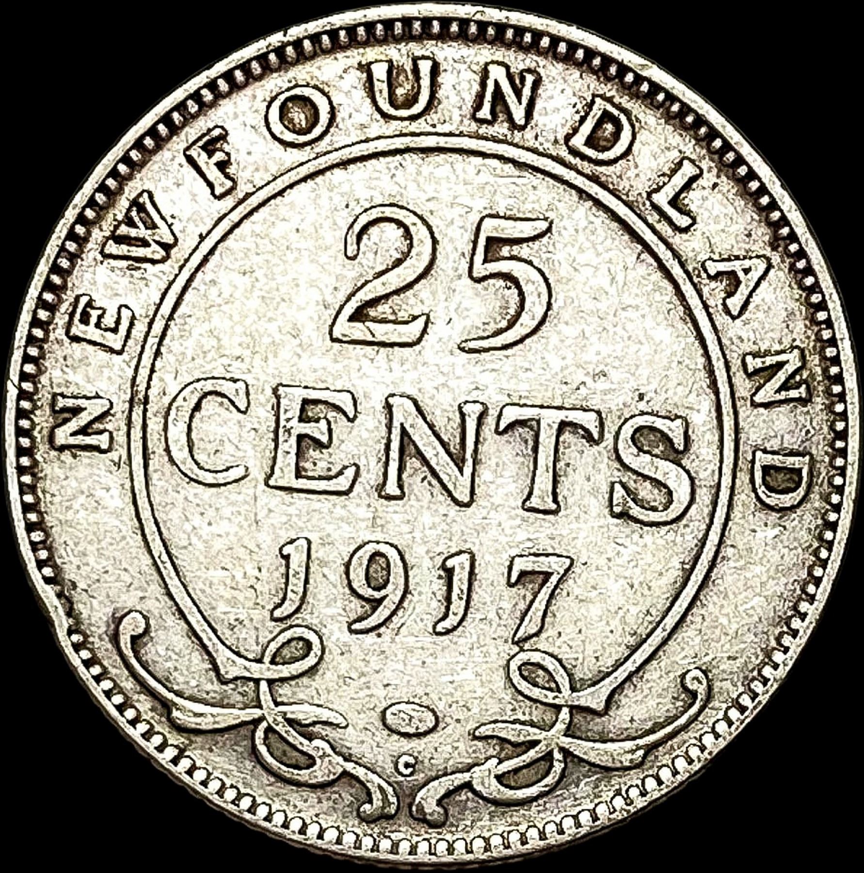 1917-C NewFoundland George V Silver 25 Cents NEARLY UNCIRCULATED