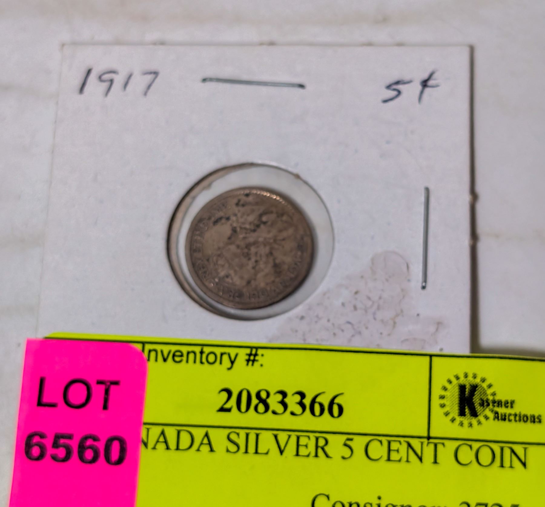 1917 CANADA SILVER 5 CENT COIN