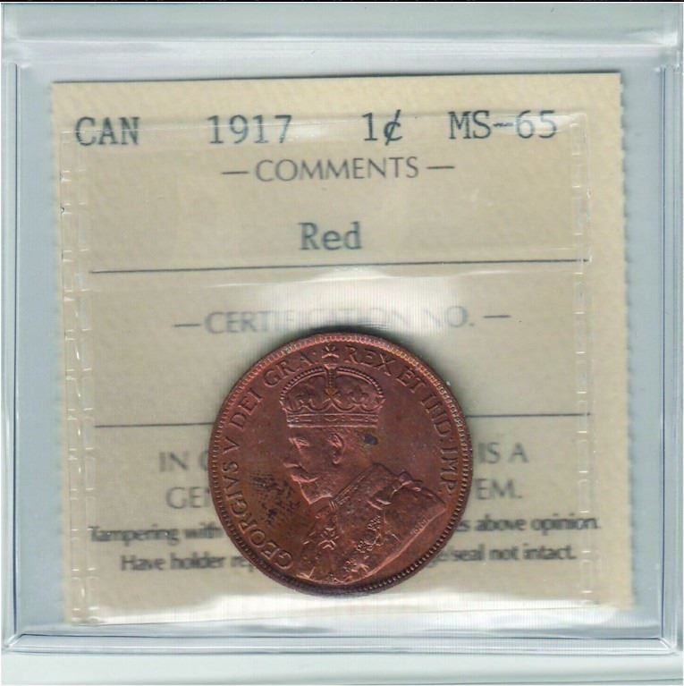 1917 Canada 1-Cent ICCS MS65 RED