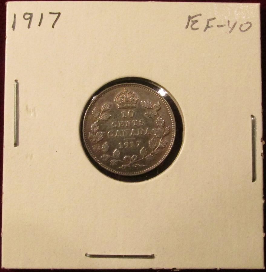 1917 Canada Silver Dime. EF. Catalog value $20.00.