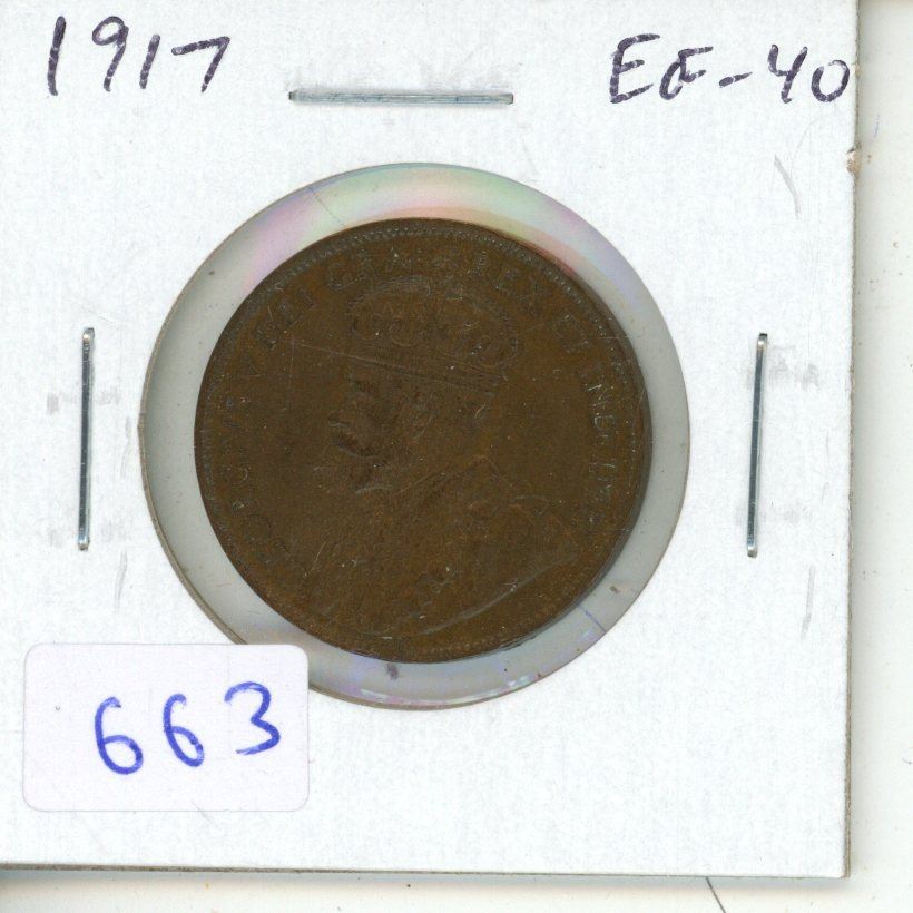 1917 Canadian Large Cent. Issued during World War I. EF-40.