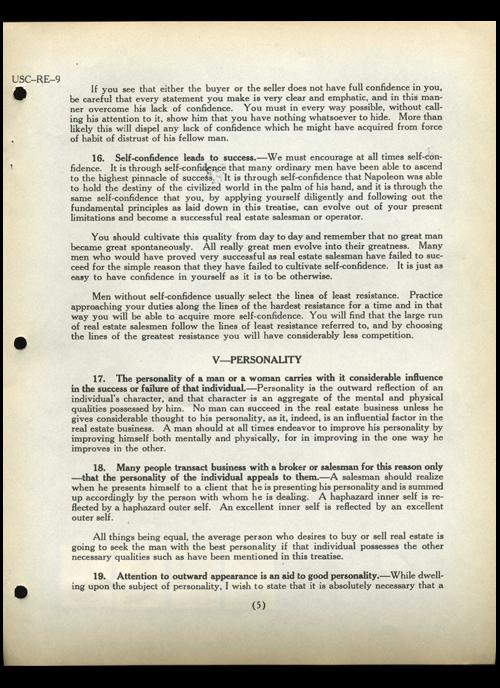 Scarce original collection page on the reverse of a real estate course manual; 4 scarce early pieces