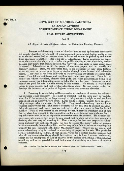 Scarce original collection page on the reverse of a real estate course manual; 5 scarce early pieces