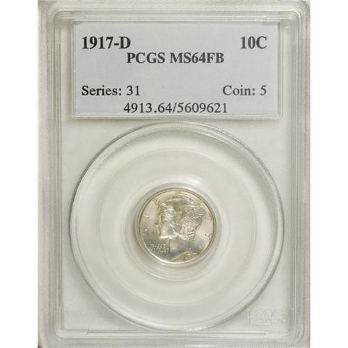 1917-D 10C MS64 Full Bands PCGS. Pleasing luster and e