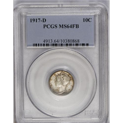 1917-D 10C MS64 Full Bands PCGS. Unusual blue-violet,