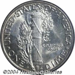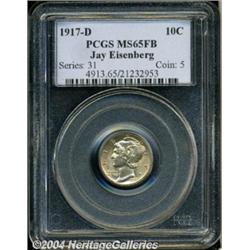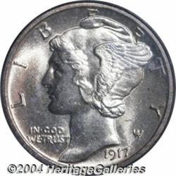 <B>1917-D<10C> MS65 Full Bands PCGS.</B></I> Ex: Jay Eisenberg Collection. Showing little of the characteristic peripheral weakness commonly seen on this issue, this piece is boldly struck in virtually all areas. There are no reportable abrasions, and the flashy mint luster is overlaid by an even layer of attractive golden-rose patina on each side. Commonly compared to its more famous first-year counterpart, the '17-D does, in fact, compare favorably in all Uncirculated grades to the '16-D. Yet, it is priced at a fraction of the '16-D's price in Gem condition. Population: 25 in 65, 6 finer (7/04). <BR><BR><B>Important notice:</B> Heritage usually auctions material at the rate of 200-250 lots per hour. On some occasions eBay Live bid software or the Internet may not be able to keep up with the pace of the auction. We recommend placing a realistic absentee bid now as insurance to avoid disappointment. Occasionally the auctioneer may eliminate or reject an eBay Live bid, and the auctioneer may also reopen a lot after the close of the eBay live bidding (usually because we missed an audience bid), and may reject your bid even if it shows you as the winning bidder. By bidding via eBay Live, you agree that Heritage may award the lot to another bidder at its sole discretion under the circumstances described above or any other reasonable circumstances. Since eBay bids are not shown to us until we open the lot on the floor, we treat those bids just like floor bids. In most cases the floor responds before the eBay bid is presented to us, due to Internet lag time, so for consistency we have made it a policy that floor bids are always considered first over tie eBay live bids. Also please note that all Heritage lots purchased through eBay Live carry a 20% Buyer's Premium. Please make sure you read the Terms and Conditions before you bid. </span></font></tr></table></td></tr></table>