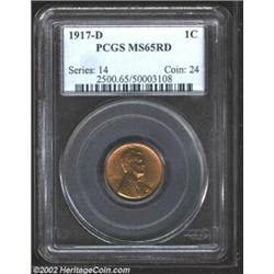 1917-D 1C MS65 Red PCGS. Orange-red with wisps of lavender on the reverse. Important notice: We expect to be auctioning lots at the rate of 200-250 per hour. Sometimes eBay Premier live bid software cannot keep up with that pace, so we strongly recommend that you place a realistic proxy bid now as insurance to avoid disappointment. Also please note that all Heritage/CAA lots purchased through eBay Premier carry a 20% Buyer's Premium. Please make sure you read the Terms and Conditions.
