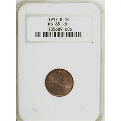 <B>1917-D 1C MS65 Red NGC.</B></I> . NGC Census: (19/0). PCGS Population (42/5). Mintage: 55,120,000. Numismedia Wsl. Price for NGC/PCGS coin in MS65: $1,500. (#2500)<BR><BR><B>Coin Engraver:</B> Victor D. Brenner<BR><BR><b>Shipping:</b> Coins & Currency (<a target="_blank" href="http://www.heritageauctions.com/common/shipping.php">view shipping information</a>)